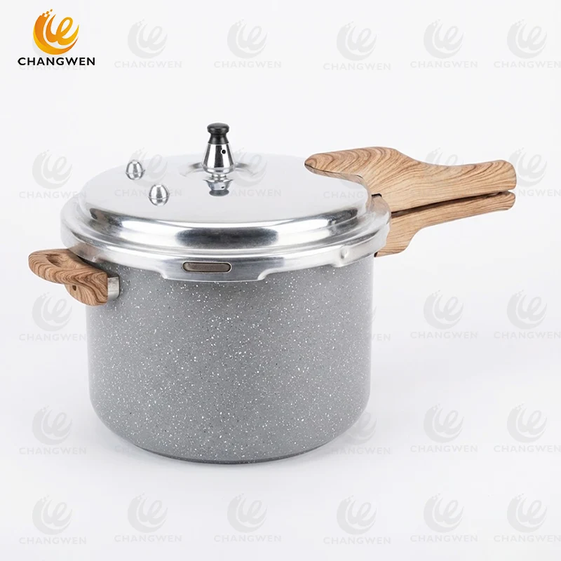Thick aluminum pressure cooker with explosion-proof system, limited pressure protection, and smooth single-hand rotating lid. Perfect for fast, safe home cooking.