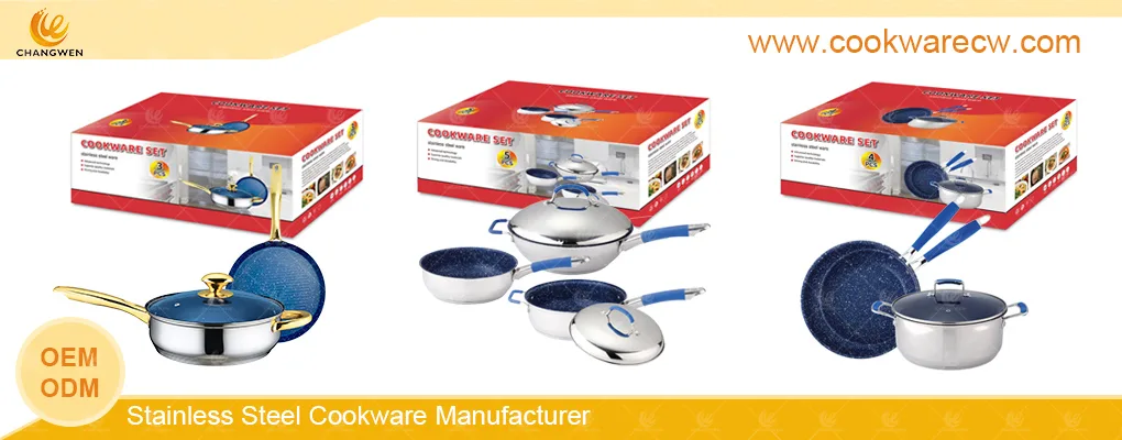 Changwen is a leading cooking utensils manufacturers. We supply high quality stainless steel cooking pots and pans to all over the world. We can also customize the local hot-selling stainless steel pots and pans. Please send your requirements to Changwen.